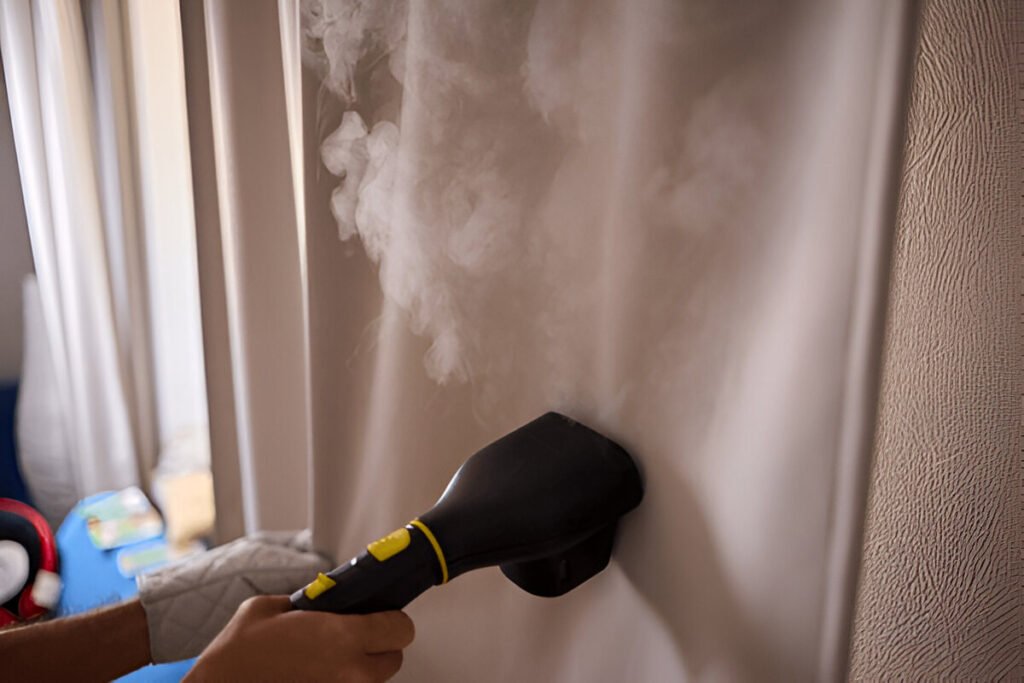 Não se esqueça das cortinas! Nossa limpeza profissional remove poeira e alérgenos, deixando-as com um aroma fresco e uma aparência impecável.